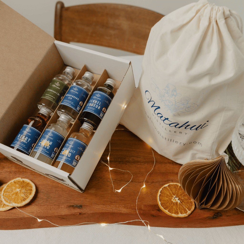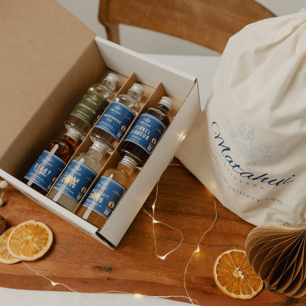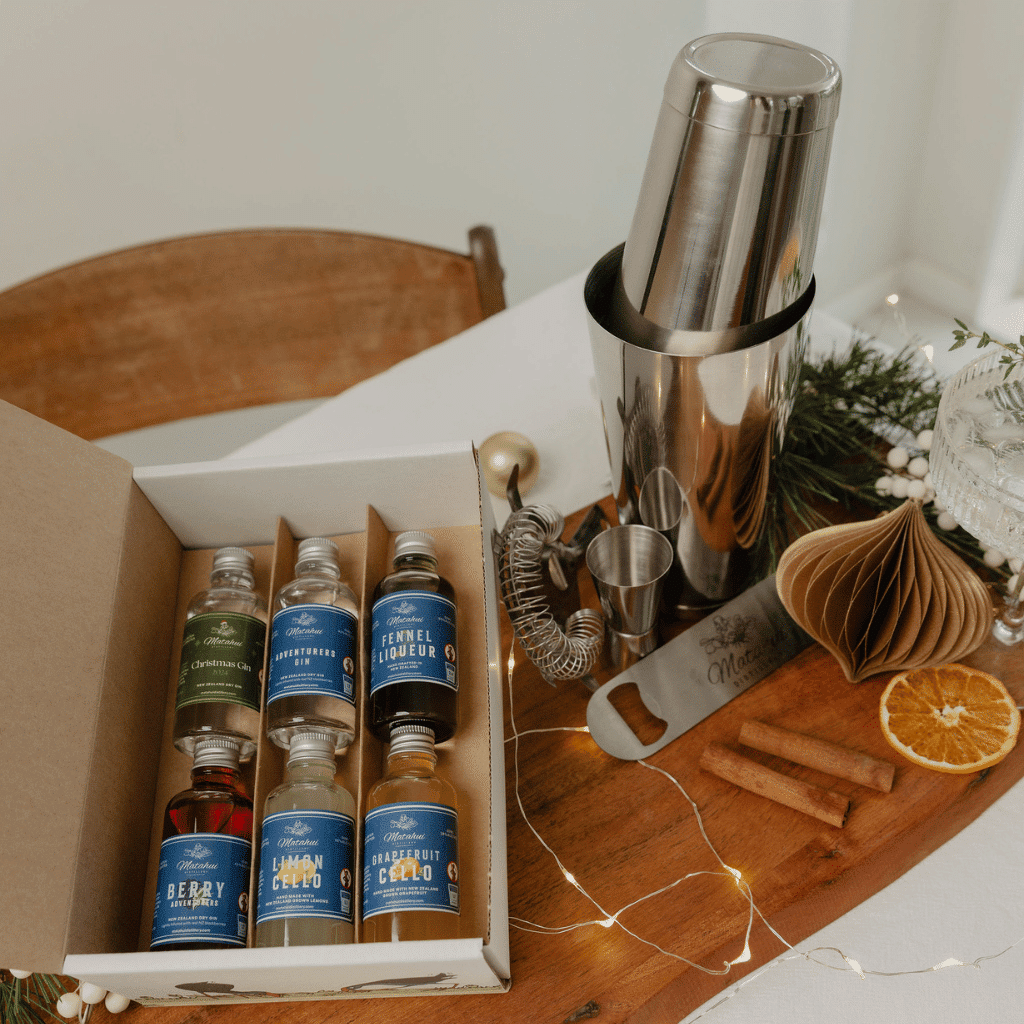 Our Bartender Gift Box pairs six of Matahui Distillery’s handcrafted, small-batch gins and liqueurs with essential cocktail-making tools and two cocktail making recipe cards, making it the perfect present for those who love to explore new flavours and refine their mixology skills. Whether crafting cocktails for Christmas celebrations or enjoying delightful drinks year-round, the Bartender Gift Box provides everything needed to create cocktails.